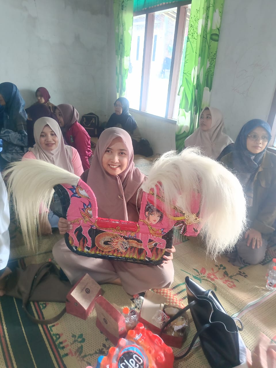 Dalam foto kegiatan, terlihat para warga belajar duduk bersama beralaskan tikar, fokus menganyam bilah-bilah bambu menjadi kerangka Jaran Kepang. Proses ini menuntut ketelitian dan kesabaran tinggi agar menghasilkan produk yang kuat dan estetis.